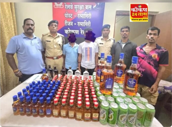 रत्नागिरी रेल्वे स्थानकावर आरपीएफने मद्य साठ्यासह दोघांना घेतले ताब्यात-