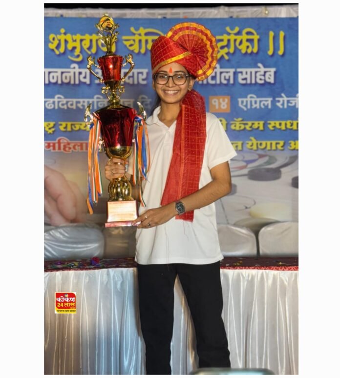 शंभूराजे फ्रेंड्स सर्कल, कोल्हापूर आयोजित आमदार सतेज पाटील यांच्या वाढदिवसा निमित्त आयोजित करण्यात आलेल्या राज्य मानांकन कॅरम स्पर्धेत महिला एकेरीच्या अंतिम फेरीत रत्नागिरीच्या आकांक्षा कदमने सिंधुदुर्गच्या केशर निर्गुणवर २५-७, २५-१५ अशा सरळ दोन सेटमध्ये मात करून या गटाचे विजेतेपद पटकाविले.महिलांच्या तिसऱ्या क्रमांकासाठी झालेल्या लढतीत मुंबई उपनगरच्या प्राजक्ता नारायणकरने ठाण्याच्या मधुरा देवळेला २५-११, २५-१९ असे हरविले. विजेत्या पहिल्या आठ खेळाडूंना रोख पारितोषिके व चषक देऊन गौरविण्यात आले. महाराष्ट्र कॅरम असोसिएशनचे मानद सचिव अरुण केदार, खजिनदार अजित सावंत, सहसचिव योगेश फणसळकर, कोल्हापूर जिल्हा हौशी कॅरम असोसिएशनचे सचिव विजय जाधव, छत्रपती शंभूराजे मंडळाचे मान्यवर पदाधिकारी व प्रमुख पंच सूर्यकांत पाटील उपस्थित होते.