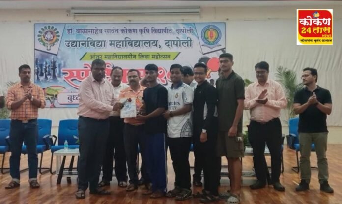 दिनांक 01 व 02 नोव्हेंबर 2025 या कालावधीमध्ये उद्यानविद्या महाविद्यालय, दापोली येथे आयोजित केलेल्या आंतर महाविद्यालयीन क्रीडा महोत्सव 2025 कार्यक्रमामध्ये कृषी महाविद्यालयातील विद्यार्थी कु.आदित्य तांबेकर व कु.आकाश परताळे या विद्यार्थ्यांनी बॅडमिंटन क्रीडा स्पर्धेत तृतीय क्रमांक मिळवला.