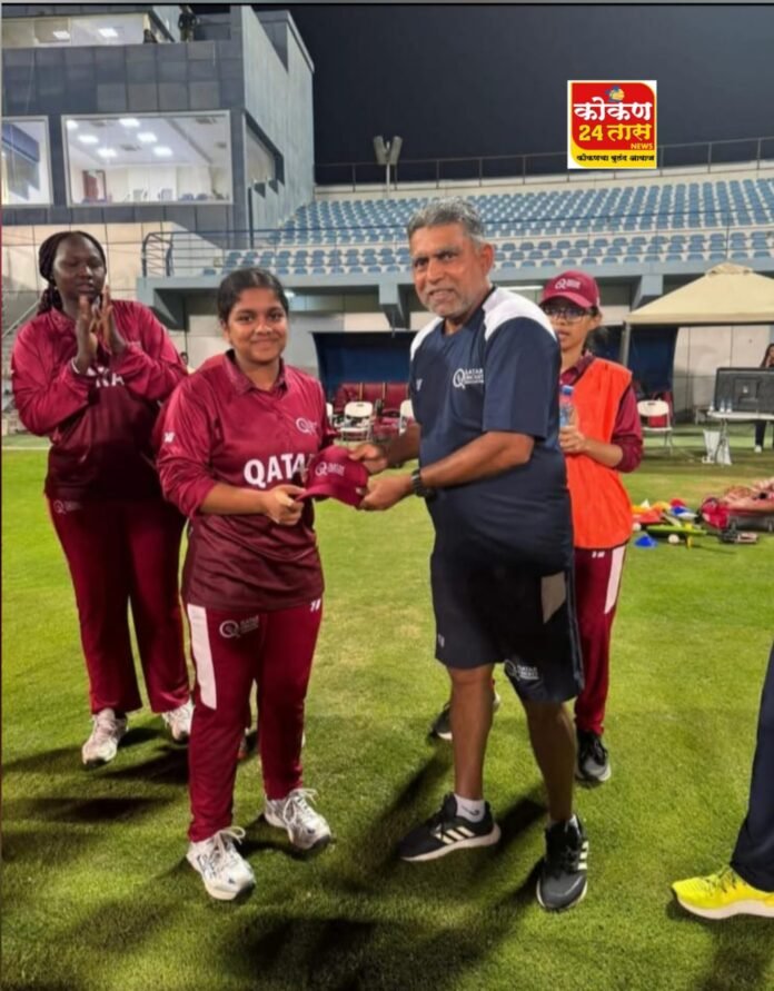 चिपळूणच्या गोवळकोट गावाशी नाळ जोडलेली, कॅप्टन खालिद अब्दुल वहाब मुकादम यांची कन्या फातिमा खालिद मुकादम हिने आज Qatar Senior Women’s Cricket Team साठी पदार्पणाचा सामना खेळत इतिहास रचला. मध्यमगती गोलंदाज आणि मधल्या फळीत फलंदाजी करणारी फातिमा केवळ १५ वर्षांची असून, आंतरराष्ट्रीय स्तरावर तिने चिपळूणचे नाव उज्वल केले आहे.वडिलांचे मूळ गाव गोवळकोट, चिपळूण असल्याने हा यशस्वी क्षण केवळ कुटुंबासाठीच नव्हे, तर संपूर्ण चिपळूण शहरासाठी अभिमानास्पद ठरतो. लहान वयात मिळवलेले हे मोठे यश भविष्यातील उज्ज्वल कारकिर्दीचे संकेत देणारे आहे.फातिमाच्या या यशाबद्दल चिपळूणमधील सर्व स्तरातील नागरिकांकडून तिच्यावर अभिनंदनाचा आणि कौतुकाचा वर्षाव होत आहे.