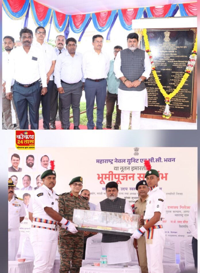 2 महाराष्ट्र नेव्हल युनिट एनसीसी भवनाचे भूमिपूजन पालकमंत्री डॉ. सामंत यांच्या हस्ते आज झाले. या कार्यक्रमाला ग्रुप कमांडर ब्रिगेडियर आर. के. पैठणकर, डीआयजी डी. एन. उपाध्याय, कमांडर के. राजेशकुमार, शैलेश गुप्ता, पोलीस अधिक्षक नितीन बगाटे, अधिक्षक अभियंता मिलींद कुलकर्णी, प्रशांत चतुर, सतीश शेवडे आदी उपस्थित होते.