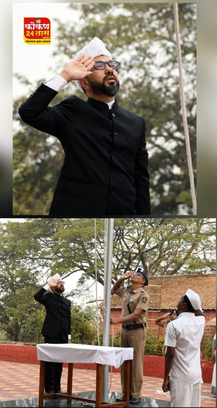 रत्नागिरी, दि. 26 (जिमाका) : जिल्हाधिकारी कार्यालय परिसरात प्रजासत्ताक दिनानिमित्त जिल्हाधिकारी मनुज जिंदल यांच्या हस्ते ध्वजवंदन करण्यात आले.