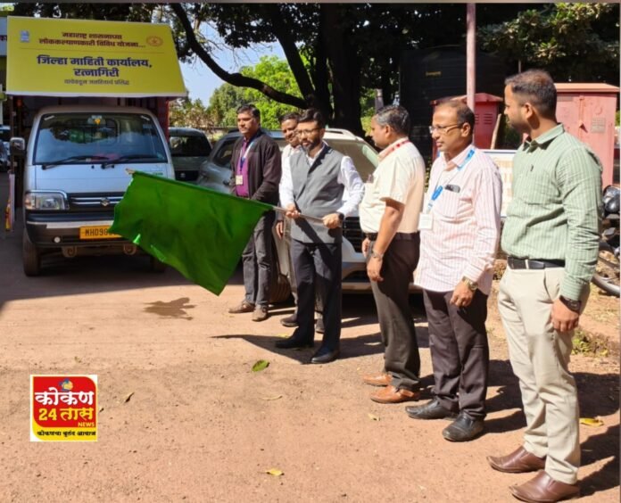 रत्नागिरी(जिमाका) : शासनाच्या विविध योजना सर्वसामान्य जनतेपर्यंत पोहचविण्यासाठी जिल्हा माहिती कार्यालयाच्यावतीने एलईडी व्हॅनमार्फत ग्रामीण भागात आजपासून जनजागृत्ती करण्यात येत आहे. जिल्हाधिकारी मनुज जिंदल यांनी या व्हॅनला हिरवा दाखविला.