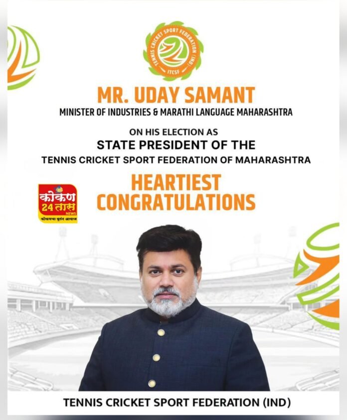 टेनिस क्रिकेट स्पोर्ट फेडरेशन महाराष्ट्र राज्याच्या अध्यक्ष पदी महाराष्ट्र राज्याचे उद्योग व मराठी भाषा मंत्री ना.उदय सामंत साहेबांची बिनविरोध निवड झाली. 27 फेब्रुवारी 2026 पासून सामंत साहेबांनी अध्यक्ष पदाचा पदभार स्वीकारला.