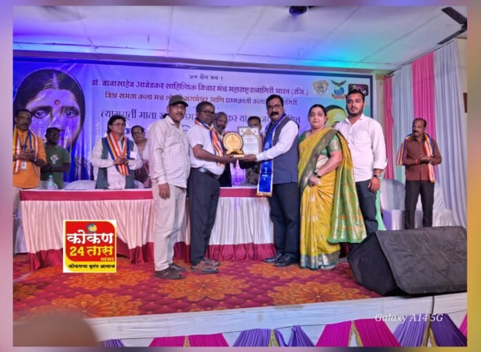 संगमेश्वर तालुक्यातील तेर्ये गावचा सुपुत्र आणि समाजकार्याची जिवंत ओळख ठरलेले मा. सुनील गेल्ये यांना विश्व समता कलामंच या सामाजिक संस्थेच्या वतीने दिला जाणारा “विश्व समता राज्यस्तरीय समाजभूषण” पुरस्कार आज अत्यंत दिमाखदार वातावरणात प्रदान करण्यात आला. लोवले (ता. संगमेश्वर) येथील मयूरबाग परिसरातील शुभगंधा हॉलमध्ये सायंकाळी ६ वाजता झालेल्या या सोहळ्यास तालुक्यासह जिल्हा आणि परजिल्ह्यातील नागरिकांची लक्षणीय उपस्थिती लाभली.