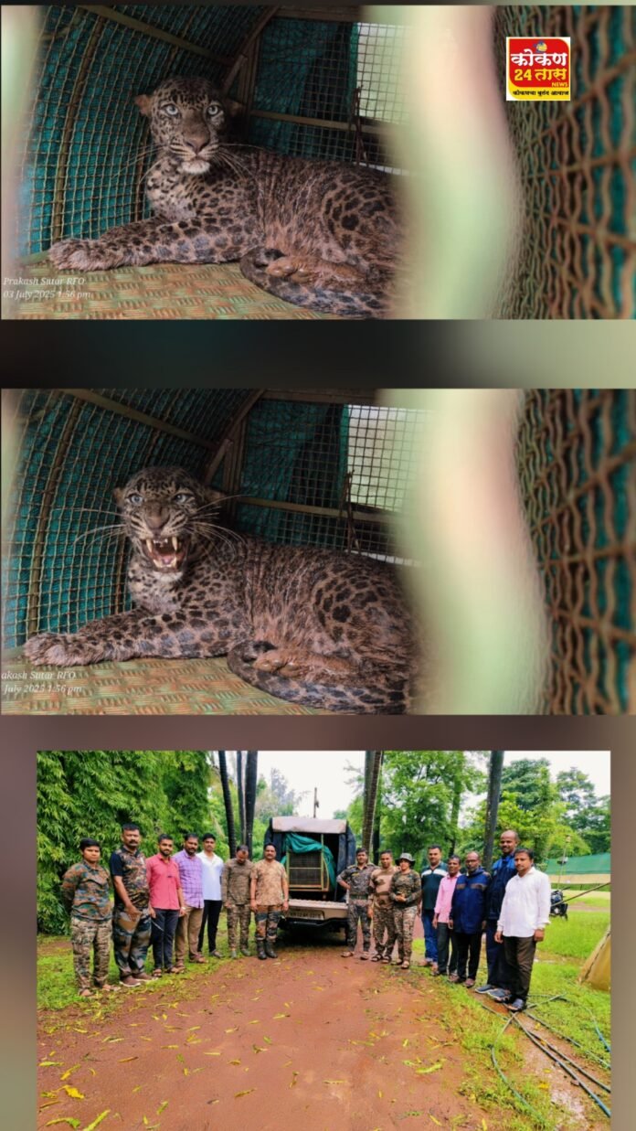 श्री. गणू बाबू करंबळे राहणार गवाणे यांचे काजू बागेमध्ये वन्य प्राणी बिबट फासकीमध्ये अडकले बाबत श्री. सुरेश तानाजी करंबळे राहणार गवाने यांनी भ्रमणध्वनी द्वारे कळवलेनुसार तात्काळ वन विभागाचे अधिकारी व कर्मचारी यांनी जागेवर जाऊन पाहणी केली. सदर बिबट वन्य प्राण्याला लोखंडी पिंजऱ्यामध्ये सुरक्षित रित्या घेतले व त्याची पशुवैद्यकीय अधिकारी लांजा यांचेकडून तपासणी करून घेतली तो नर असुन अंदाजे दोन वर्ष वयाचा आहे तो सुस्थितीत असल्याची खात्री करून त्यास नैसर्गिक अधिवासात मुक्त केले