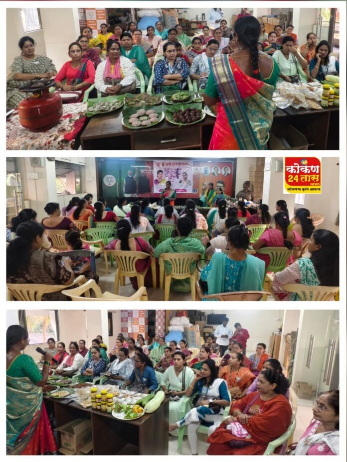 यावेळी महिलांना श्री अन्न (भरड) धान्यांचे आरोग्यदायी महत्त्व, त्यांचे पोषणमूल्य तसेच दैनंदिन आहारामध्ये त्यांचा वापर कसा वाढवावा याबाबत सविस्तर मार्गदर्शन सौ वर्षा ताई गोरिवले यांच्याकडून देण्यात आले