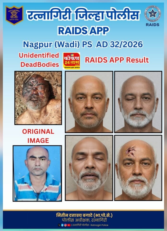 रत्नागिरी पोलीसांच्या RAIDS App मुळे अवघ्या २ तासांत नागपूर येथे अज्ञात मृतदेहाची ओळख पटली