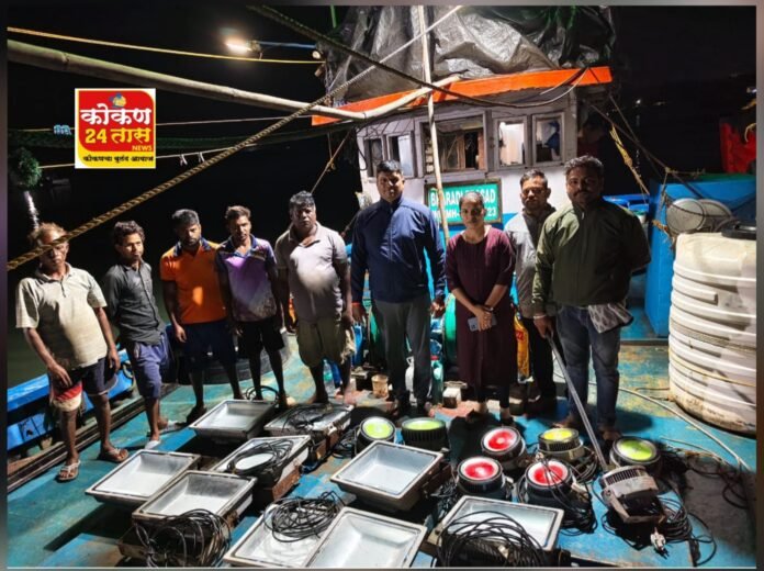 सदर नौकेवर आढळलेले एल.ई .डी लाईट व जनरेटर नोकेसह पुढील कार्यवाहीपर्यंत मिरकरवाडा बंदरात जप्त करून ठेवण्यात आले आहेत.