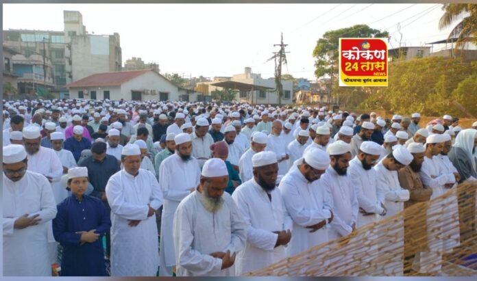 *रत्नागिरी सह जिल्ह्यात रमजान ईद उत्साहाने साजरी करण्यात आली. ईद चा विशेष नमाज अदा करण्यासाठी मुस्लिम बांधवांनी विविध मशीदीं मध्ये मोठी गर्दी केली होती..