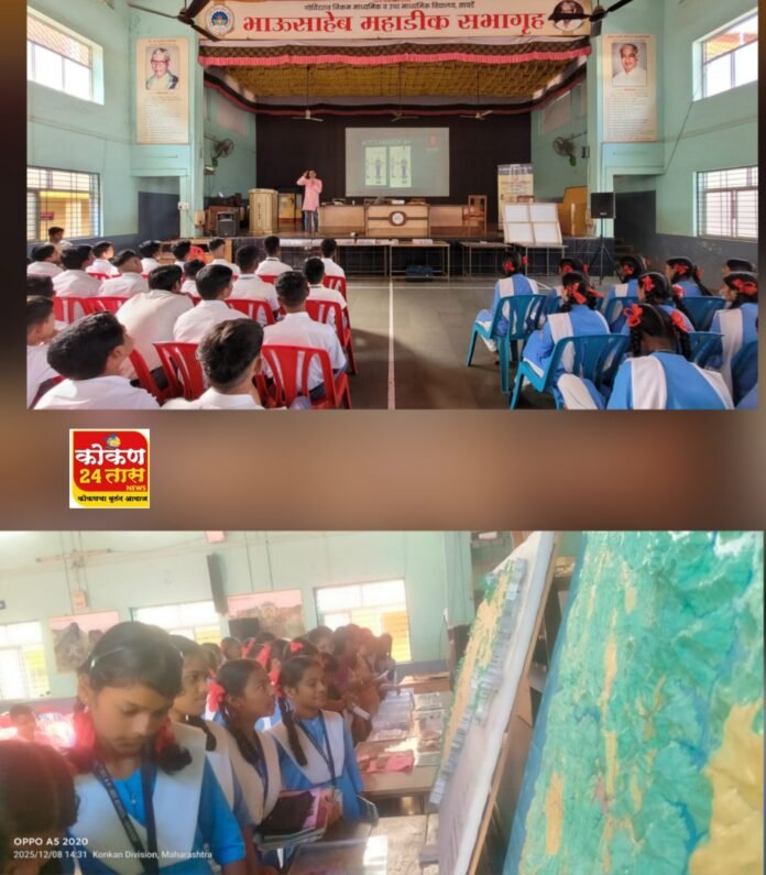 तसेच महाराष्ट्राच्या भूगोल व इतिहासाचा 3D नकाशाद्वारे प्रभावी आढावा विद्यार्थ्यांसमोर सादर करण्यात आला.