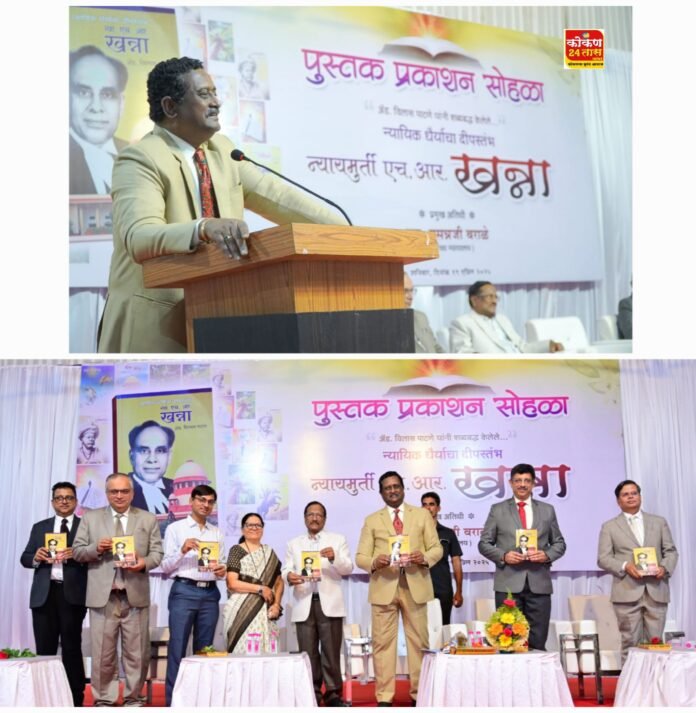 रत्नागिरी बार असोसिएशनचे अध्यक्ष आणि ज्येष्ठ लेखक ॲड. विलास पाटणे यांच्या “न्यायिक धैर्याचा दीपस्तंभ न्यायमूर्ती एच. आर खन्ना” या पुस्तकाचा प्रकाशन सोहळा रत्नागिरी शहरातील विवेक बँक्वेट हॉल येथे मोठ्या दिमाखात पार पडला. त्याप्रसंगी ते बोलत होते. यावेळी व्यासपीठावर ज्येष्ठ वकील, लेखक ॲड. विलास पाटणे यांच्यासह मुंबई उच्च न्यायालयाचे न्यायाधीश मकरंद कर्णिक, मुंबई उच्च न्यायालयाचे न्यायाधीश आणि रत्नागिरी जिल्ह्याचे पालक न्यायाधीश माधव जामदार, रत्नागिरी प्रधान जिल्हा न्यायाधीश सुनील गोसावी आदी मान्यवर उपस्थित होते.