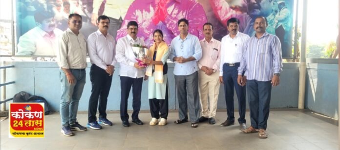 आरोहीचे अभिनंदन करताना आमदार शेखरजी निकम उद्योजक प्रशांतजी निकम संस्थेचे सचिव महेशजी महाडिक,विद्यालयाचे प्राचार्य राजेंद्र वारे उपप्राचार्य विजय चव्हाण