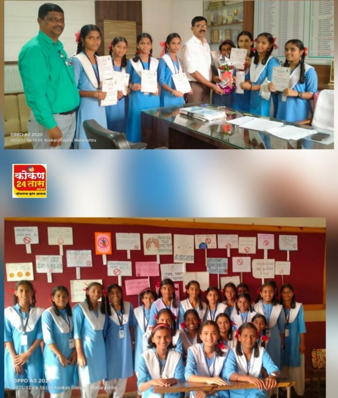 सावर्डे – सह्याद्री शिक्षण संस्था संचलित गोविंदराव निकम माध्यमिक व उच्च माध्यमिक विद्यालयात नशामुक्ती अभियानांतर्गत पोस्टर व निबंध स्पर्धेचे आयोजन उत्साहपूर्ण वातावरणात पार पडले. इयत्ता 8 वीच्या विद्यार्थ्यांनी तंबाखू व व्यसनमुक्तीविषयी प्रभावी संदेश देणारी आकर्षक पोस्टर्स सादर केली. तंबाखू खाणार जीवन घालवणार, धूम्रपान थांबवा – जीवनाचे दान वाचवा, जीवनाला हो म्हणा, तंबाखूला नाही म्हणा अशा प्रभावी घोषवाक्यांनी विद्यार्थ्यांनी जनजागृतीचा संदेश दिला. श्री. अशोक शितोळे यांच्या मार्गदर्शनाखाली ही स्पर्धा आयोजित करण्यात आली.