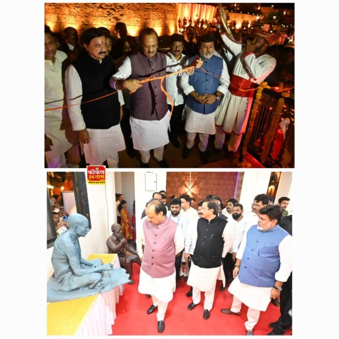 रत्नदूर्ग किल्ल्याच्या पायथ्याशी उभारण्यात आलेल्या शिवसृष्टी भाग-2 चे लोकार्पण हजारो शिवप्रेमींच्या साक्षीने ढोल, ताशे, तुतारीच्या निनादात, फटाक्यांच्या आतषबाजीत आणि महाराजांच्या जयघोषात उपमुख्यमंत्री श्री. पवार यांच्या हस्ते काल रात्री झाले. यावेळी पालकमंत्री डॉ. उदय सामंत, खासदार सुनील तटकरे, आमदार शेखर निकम, जिल्हाधिकारी एम देवेंदर सिंह, पोलीस अधीक्षक धनंजय कुलकर्णी, मुख्य कार्यकारी अधिकारी वैदेही रानडे आदी उपस्थित होते.