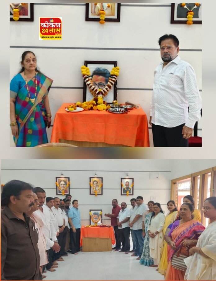 हिंदुह्दयसम्राट वंदनीय शिवसेनाप्रमुख श्रीमान बाळासाहेब ठाकरे यांच्या जयंतीनिमित्त शिवसेना उध्दव बाळासाहेब ठाकरे रत्नागिरी तालुका पक्षाच्यावतीने शिवसेना नेते सचिव तथा माजी.खासदार श्री विनायक राऊत यांचे संपर्क कार्यालय रत्नागिरी येथे बाळासाहेबांच्या प्रतिमेला पुष्पहार अर्पण करुन आदरांजली वाहण्यात आली. यावेळी शिवसेना उपनेते श्री सुरेंद्रनाथ उर्फ बाळासाहेब माने, रत्नागिरी विधानसभा संपर्कप्रमुख श्री सुदर्शन तोडणकर, जेष्ठ शिवसैनिक विधानसभा क्षेत्रप्रमुख श्री प्रमोद शेरे, तालुकाप्रमुख श्री शेखर घोसाळे, शहरप्रमुख श्री प्रशांत साळुंखे, जिल्हा युवाधिकारी श्री प्रसाद सावंत, उपजिल्हा संघटक श्री सुजित कीर, शहर युवाधिकारी श्री आशिष चव्हाण, उपजिल्हा संघटक सौ.सायली पवार, उपजिल्हा संघटक सौ.रशिदा गोदड, तालुका संघटक सौ.ममता जोशी, शहरसंघटक सौ.सेजल बोराटे, युवानेतृत्व सौ.शिवानी सावंत- माने, शिवसहकारसेना उपजिल्हासंघटक श्री प्रविण साळवी, उपतालुकाप्रमुख श्री सुभाष रहाटे, विजय देसाई, उपशहरप्रमुख श्री सलील डाफळे, श्री नितीन तळेकर, महिला उपतालुका संघटक सौ.गंधाली मयेकर, विभागप्रमुख श्री मयुरेश्वर पाटील, रविकिरण तोडणकर, चंद्रकांत साळवी, नयन साळवी, शशिकांत बारगोडे, विभाग संघटक सौ.आस्था धांगडे, उपविभागप्रमुख सुरेश कारकर, सचिन सावंतदेसाई, मिलींद हातफले, उपविभाग संघटक सौ.मिताली पवार, गावखडी पं.स.उमेदवार कृपा पाटील, जेष्ठ शिवसैनिक संभाजी सावंतदेसाई, खालगांव जि.प.उमेदवार श्री विनोद शितप, विक्रम शितप, कुवारबांव पं.स.उमेदवार उमेश राऊत, वैभव गावडे उपस्थित होते.*